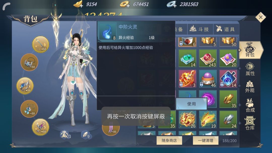 背包该开放新的位置或者彻底优化了,现在道具越来越多,每天整理背包都没微信。不知道像瞬回血药,异火经验火灵那些东西,既然不能交易,还分绑定和未绑定做什么。