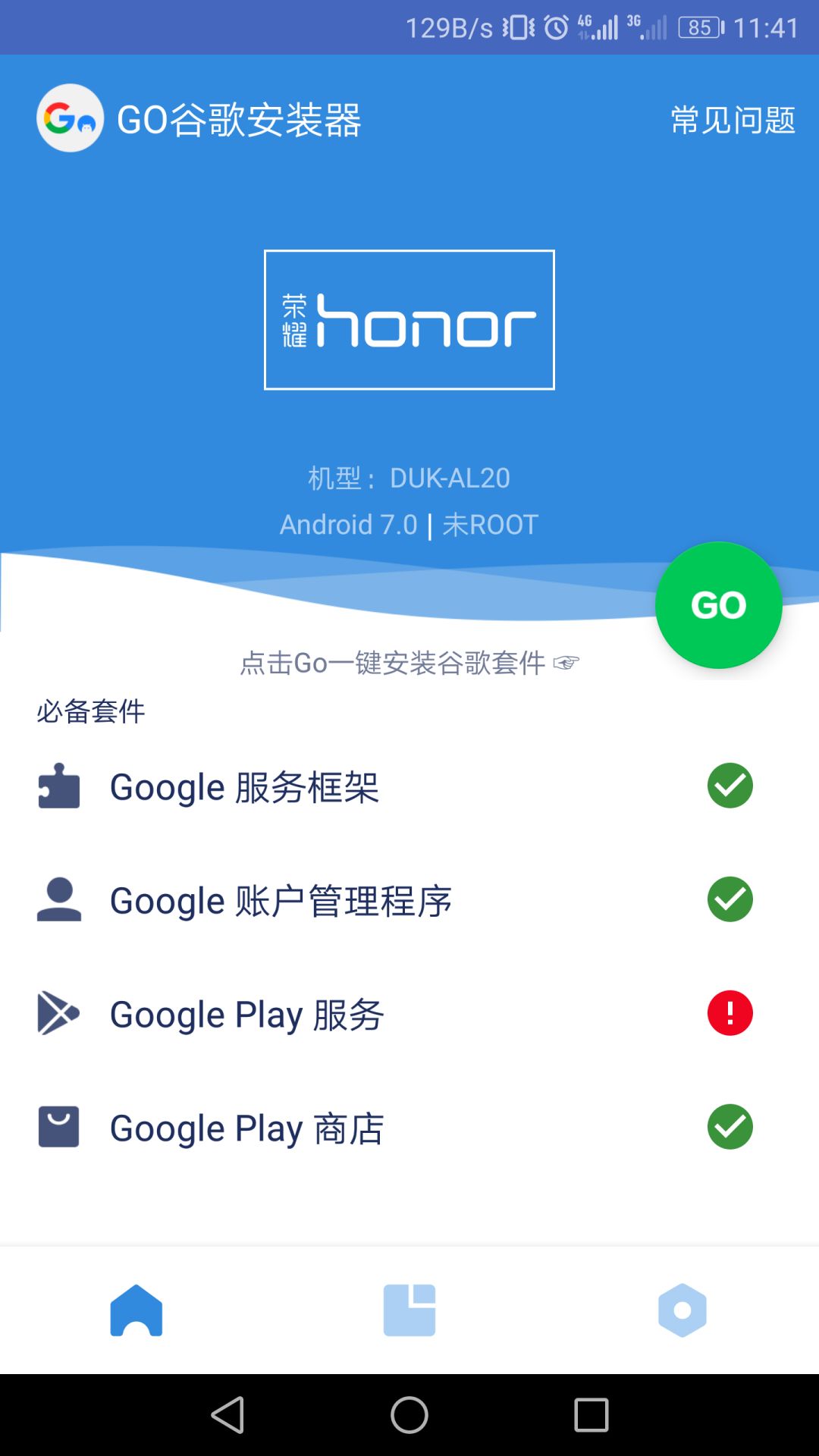 和很多朋友一样,我也是卡在了游戏开始界面,本来打算去goole play游戏重下个,结果提示链接不上google play服务,一怒之下卸载了google play服务,结果就能进了,进游戏时候提示 无法获取google play 服务,点右下角的获取 点几次后就进去了,一脸懵逼。