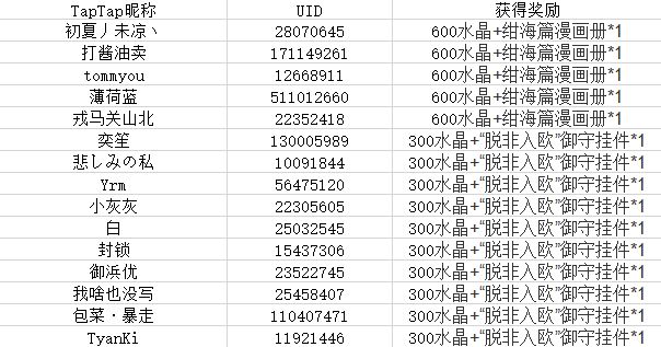 *之后请将自己的个人信息发送至 bh3TapTap@163.com。(请务必用之前发送的邮箱地址)其中包括舰长的TapTapID,TapTap昵称,游戏UID,收货人姓名,联系电话,收货地址,*所属获奖帖)。