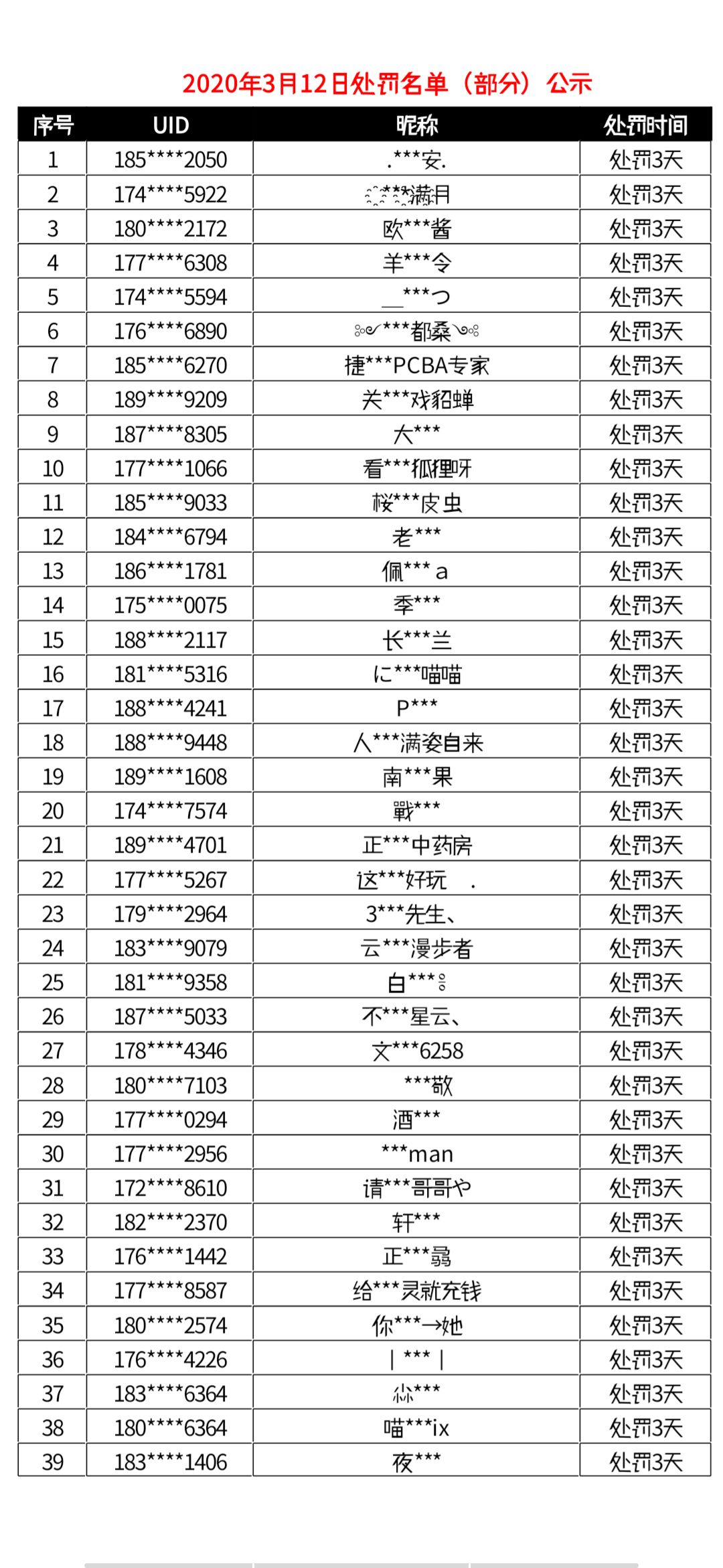 2020年3月12日处罚名单(部分)公示