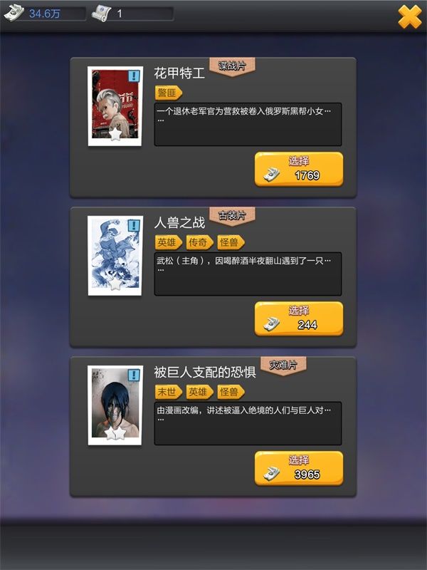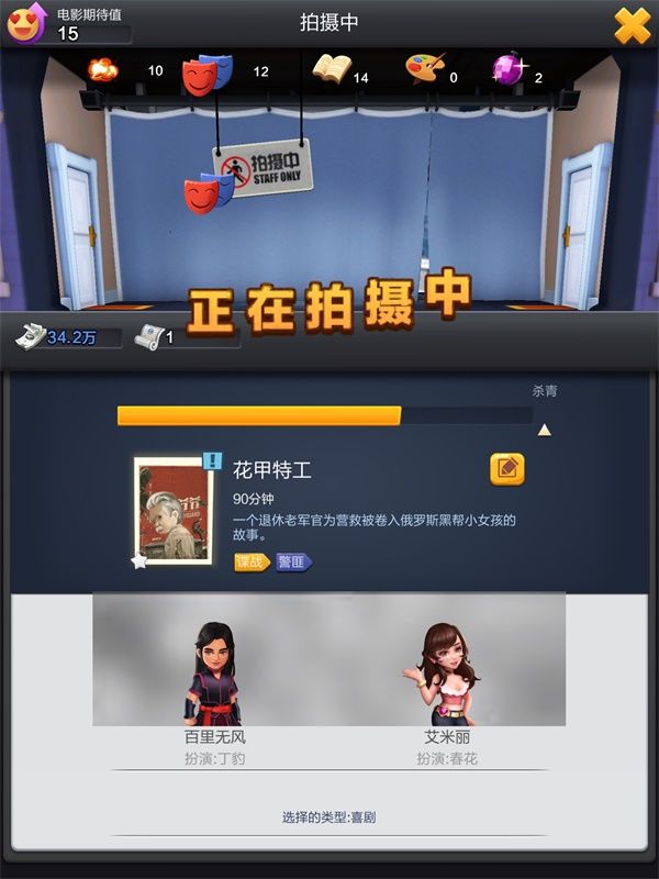 明星收集是游戏的一大玩点。毕竟要拍出火爆大片,强大的明星阵容必不可少。游戏中无论明星数量还是质量都达到了一个空前的地步,周润发张国荣林青霞这些经典港台明星,热巴鹿晗这些大陆的鲜肉小花,好莱坞的超级巨星等等,可以说,现实中有的明星,游戏中基本都有。我本人偏爱张国荣,所以通过活动拿到他作为主打明星用,也算是圆了一个小小的梦想。