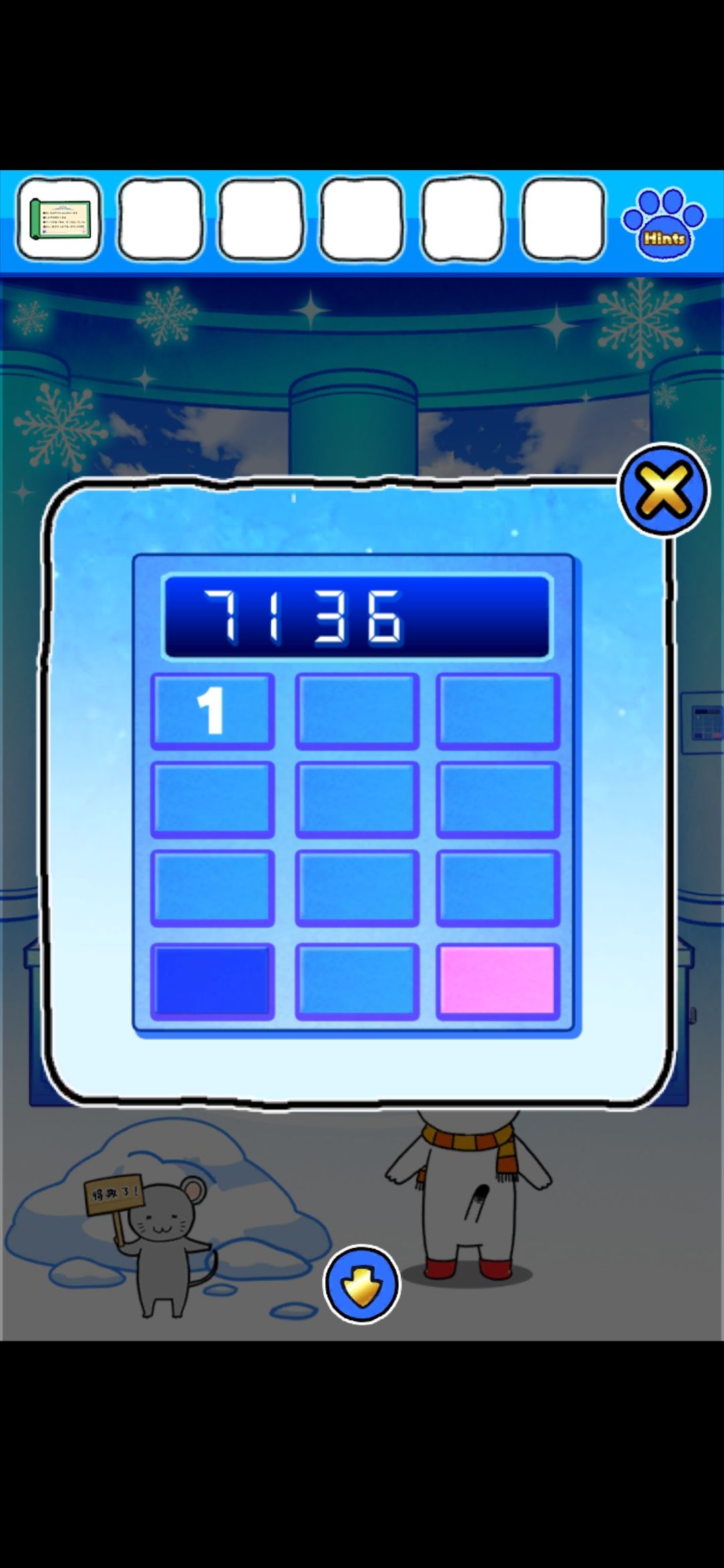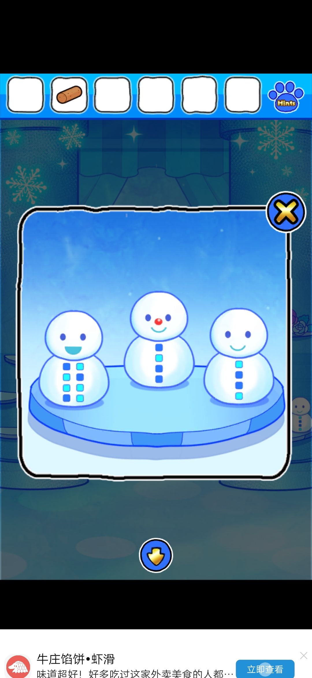 根据镜子界面的雪人的提示点冰块