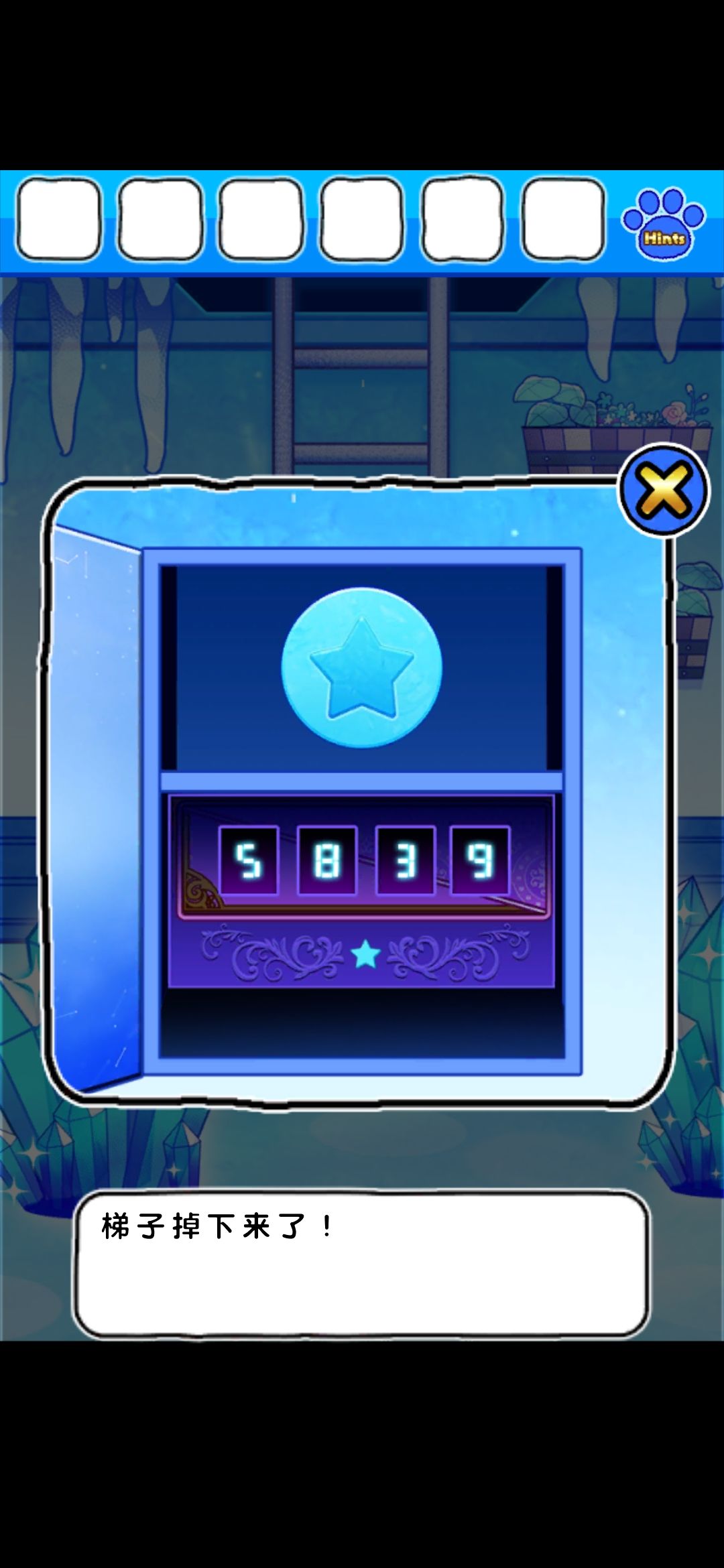 打开冰锥界面柜子,输入密码,放星星,梯子降下来