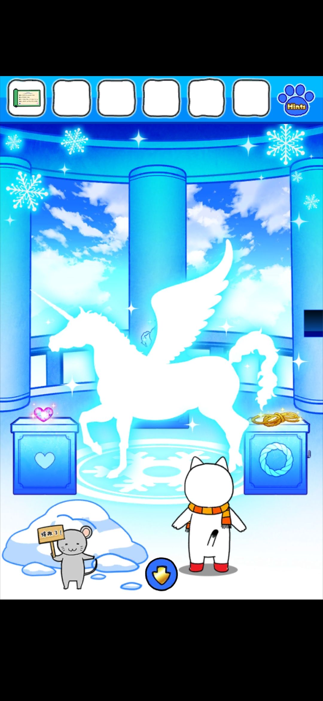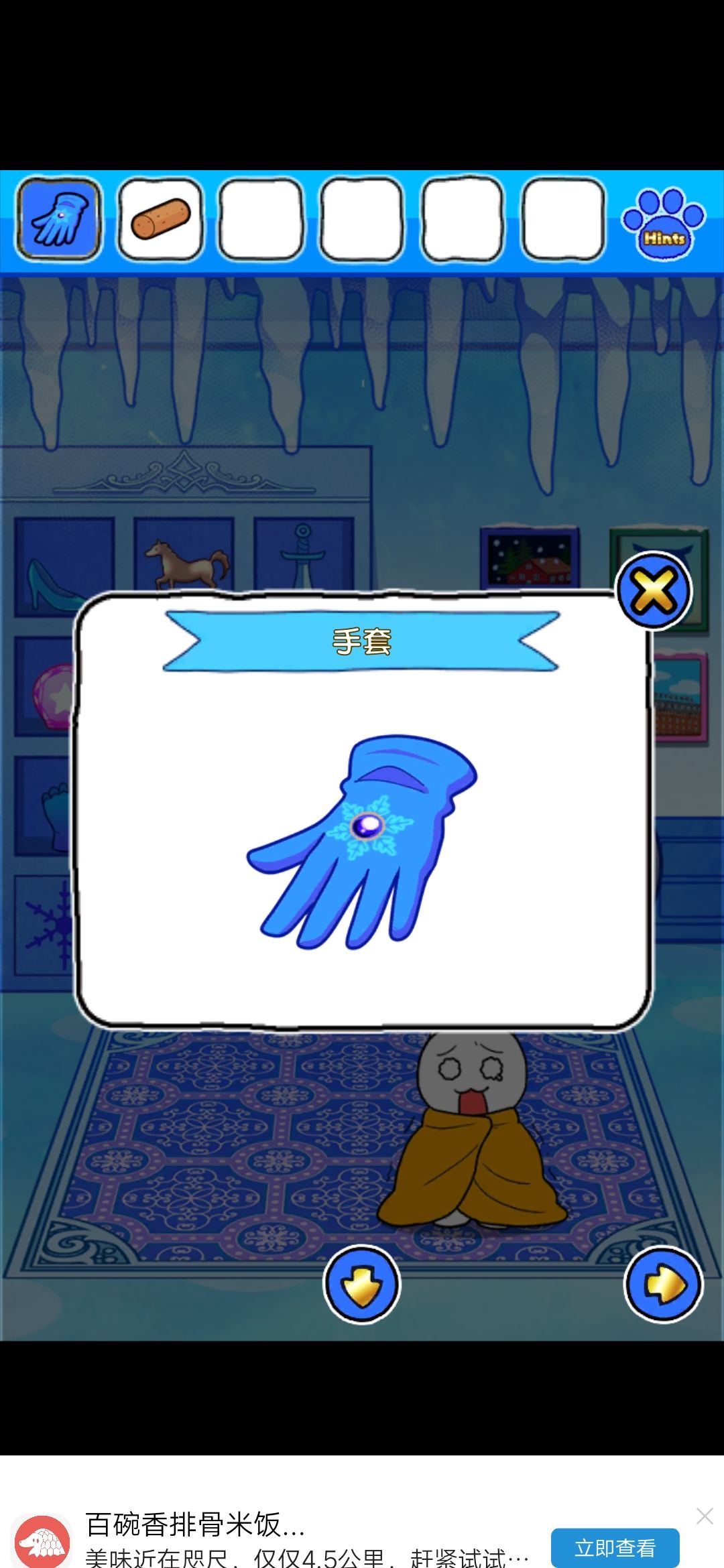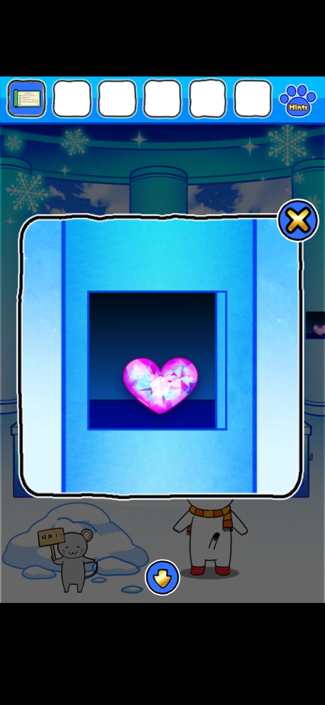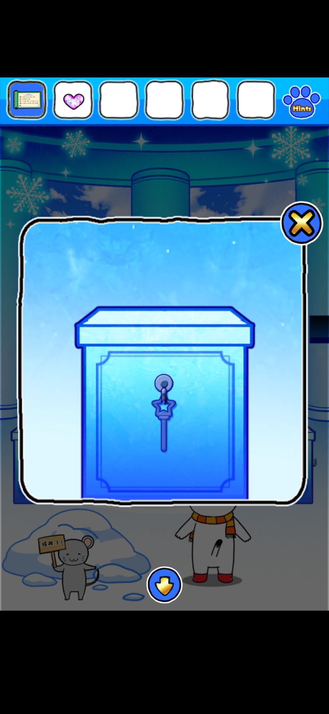 救出左边雪堆里的老鼠,得到卷轴