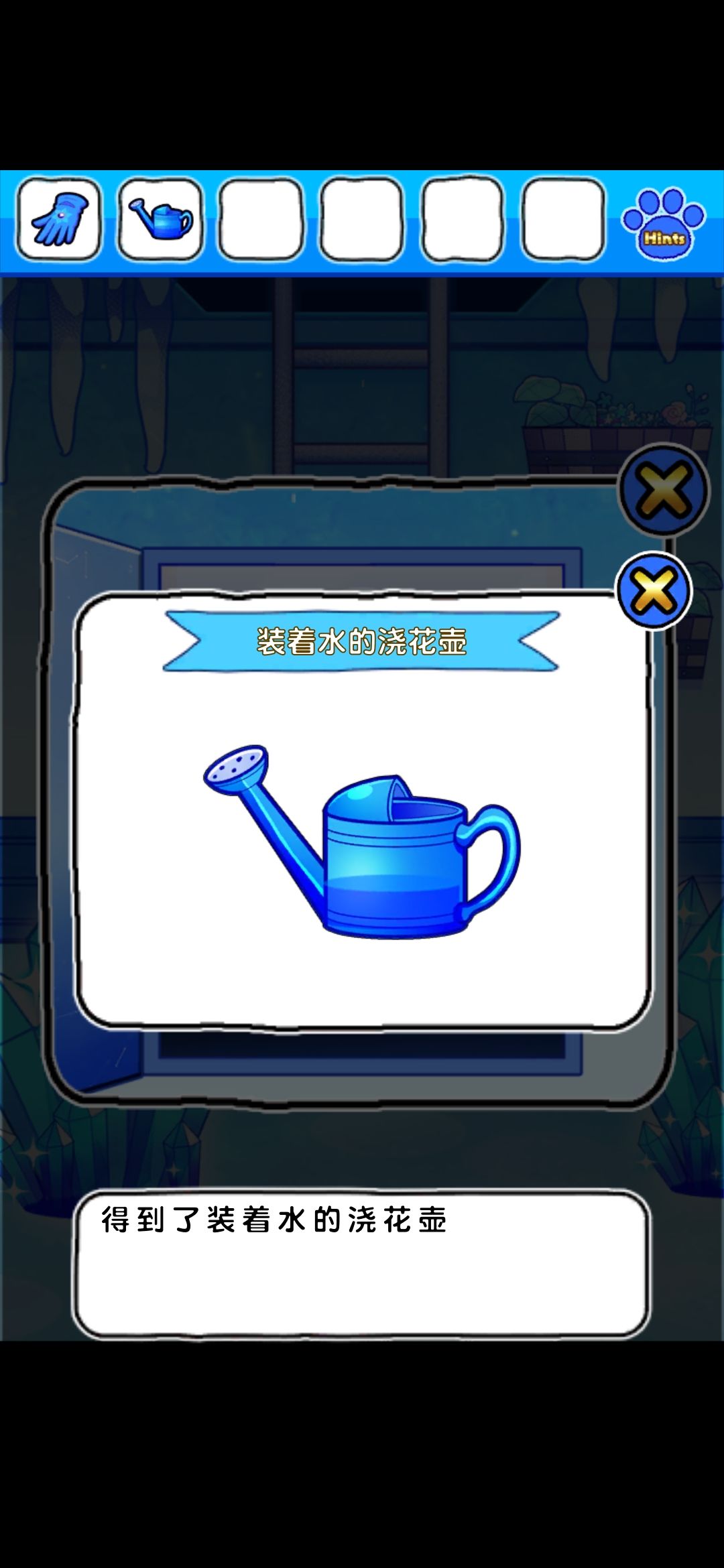 用塞子堵上柜子界面右边水缸的孔,用水壶注水,得到星星