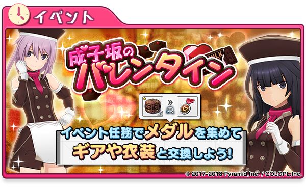 完成活动任务可获得【バレンタインシェル】(情人节贝壳),解析【バレンタインメダル】获得情人节勋章,情人节勋章可在【バレンタイン特設交換所】交换包括情人节限定服装在内的各种奖励