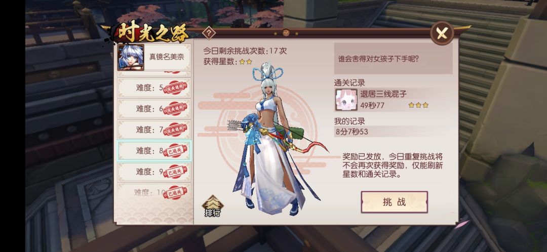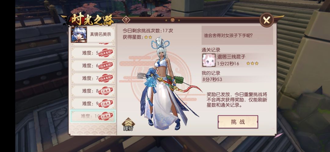把所有技能换成远程的,一绝不管,放二觉后面,带盾,白虎CD完全够,打破又有的,铭切全换物理防御,体质或生命,然后贴墙打,也可以在大石头那里,注意让boss也贴墙,不要靠太近boss,不靠近boss有时会一直不动,唯一靠近时就是用一绝,我用的武者是柳生,牙神和娜可!剩下的自己实战领悟。这是我的极限了。唉!三天来第一次榜一,出攻略可能就没了。