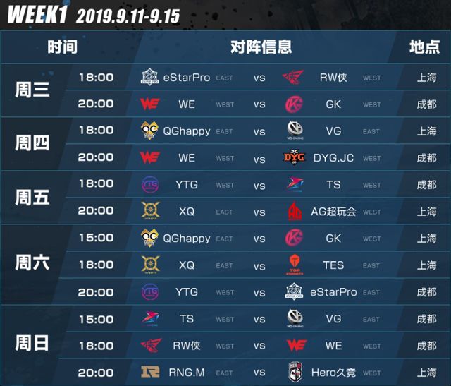 今年秋季赛即将于9月11日在东部主场上海、西部主场成都分别开战。