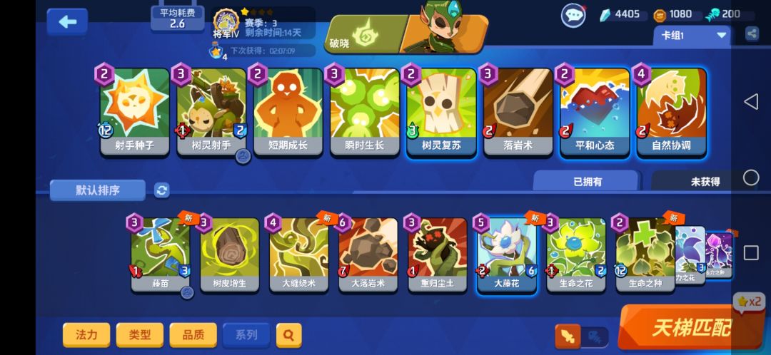最佳起手牌:有种子(属于结节,原地种,走远拉扯)/射手,没成长之前英雄最好站在树灵前面挡伤害,注意对方英雄技能,像致盲变虫冰冻能挡就挡