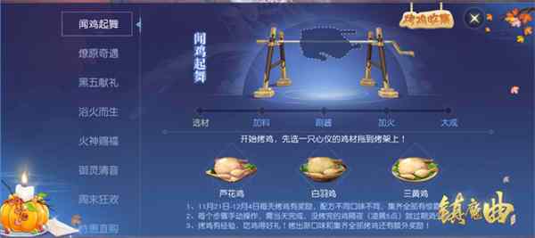 感恩节上,一顿丰美的火鸡宴是必不可少的保留节目。《镇魔曲》为天命者们准备的感恩节系列活动里,“闻鸡起舞”便将由天命者们亲自动手,搭配不同食材、不同酱料、不同火候烤火鸡!每天吃鸡有奖励,集齐所有口味还有额外惊喜送上!最重要的是,烤完火鸡还能分给好朋友们,一起享受感恩节的美味!