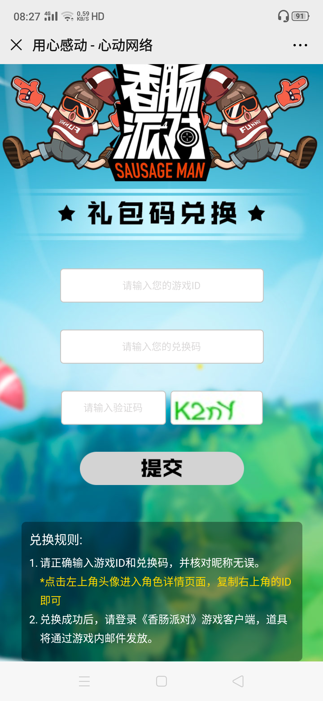 输入你的ID,领取码和验证码后,点击提交。【小香肠要注意是不是自己的昵称哦!】