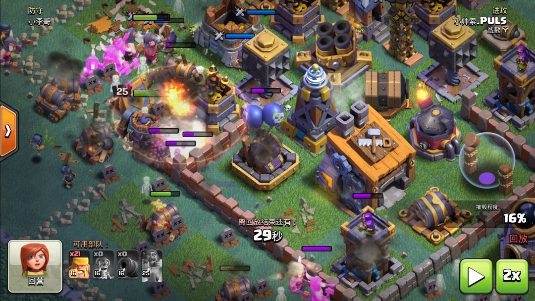 2.下边路是对手容易选择的区域,如果敌军选择从下路进攻,虽然对手的进攻部队会快速接近大本营破坏,但是在攻击的同时也会遭受到大本营周围多个强势AOE防守火力的集中输出,减缓很大的兵力。之后敌军剩余的兵力很难突破双撼地巨石以及上路多个防守建筑。