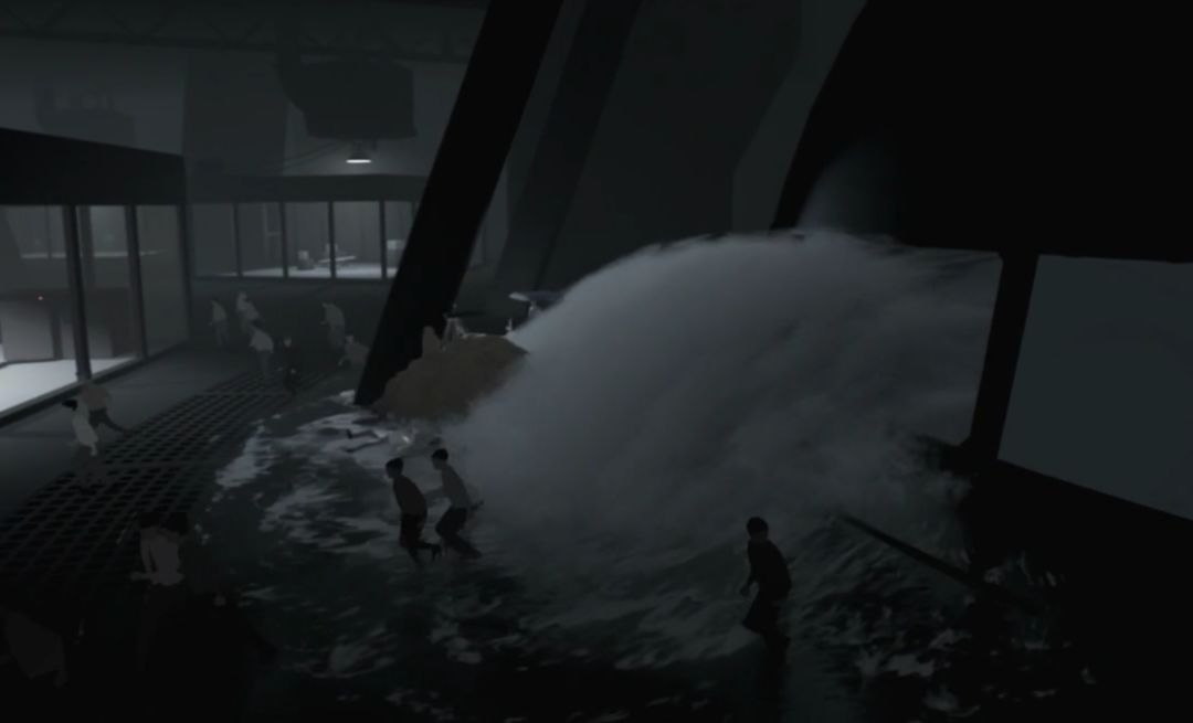 而且在深入研究之后我们会看到一个类似于反重力的房间,这里的水池是飘在半空中的,而水池当中则倒悬着不少人的尸体,毛骨悚然的是部分尸体身上已经长出细细长长的类似于寄生虫似的东西,某些尸体甚至还会偶尔怪异的抽动一下。再往后的探索,主人公可以获得一些类似于心控装置的头盔,而带上它,便可以控制所有区域内的行尸做出行动……