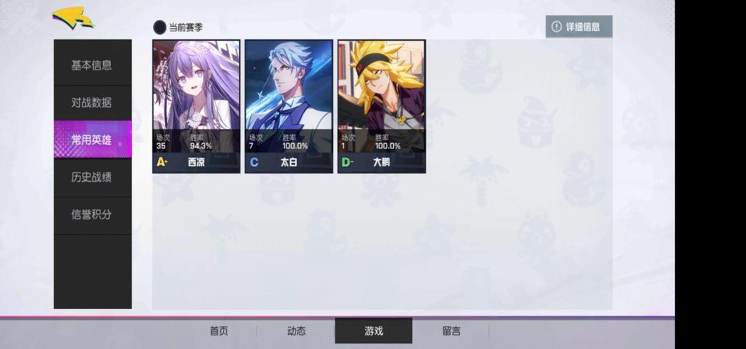 贴主是一位主玩西凉的多季尊贵传说段位玩家,从鱼塘局到尊贵传说局都经验丰富,这个是我众多传说小号中的一个,战绩如下:
