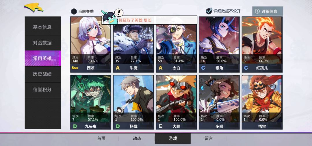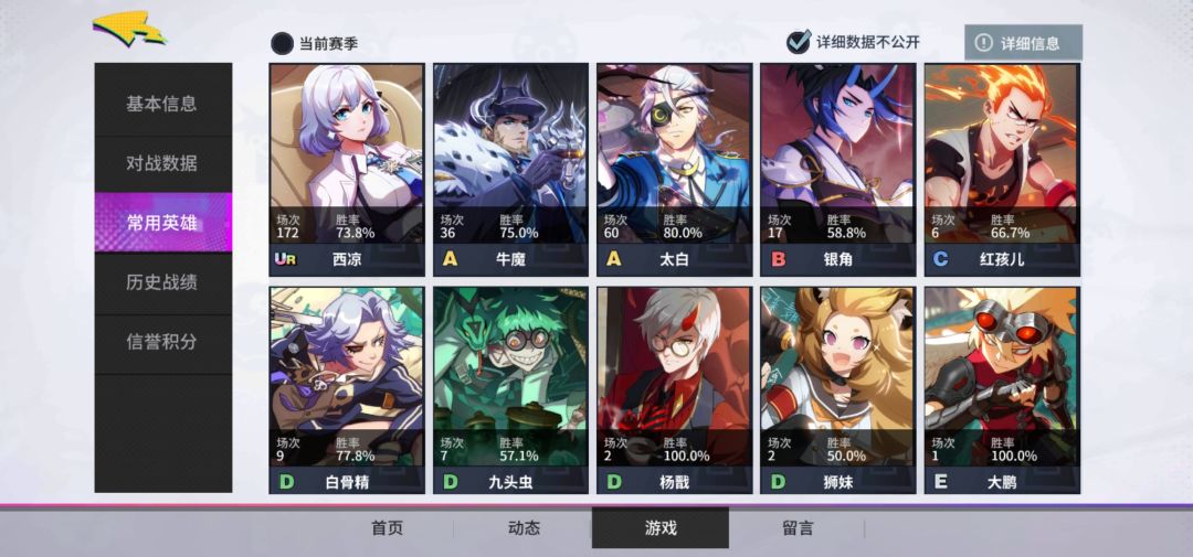因为肺炎只能呆在家,手机游戏能玩的属实又少,还是有玩非人,先上数据。