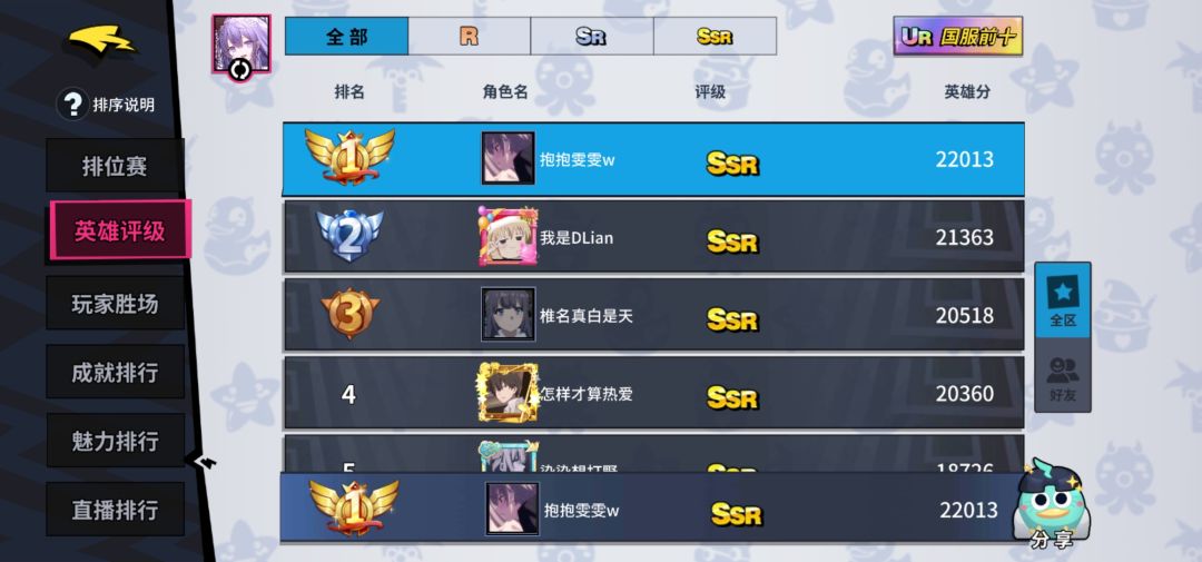 很多人都是刷的英雄分,非人学园英雄分机制不完善,没刷分新赛季研究生开打拿到UR不容易。