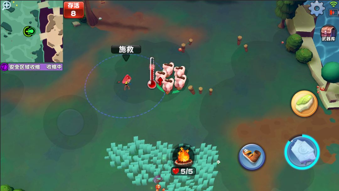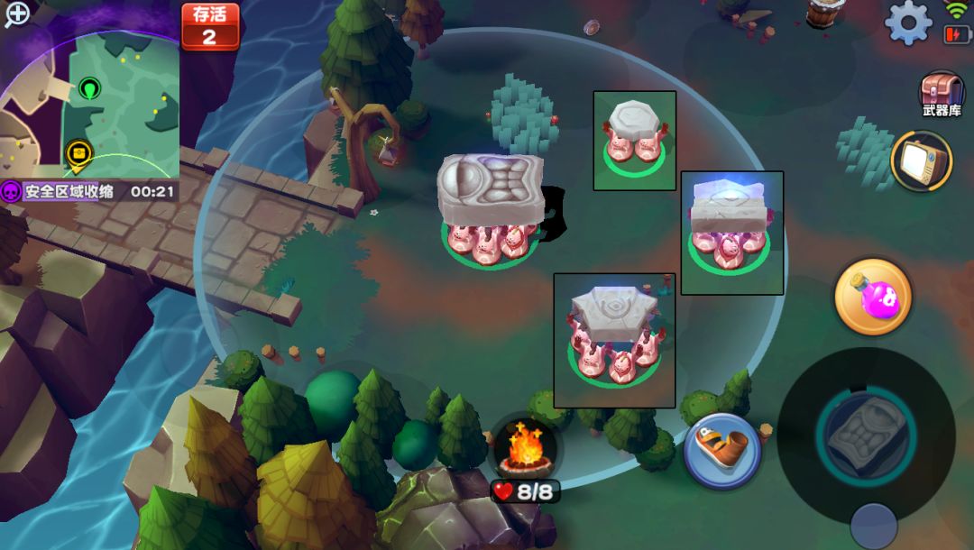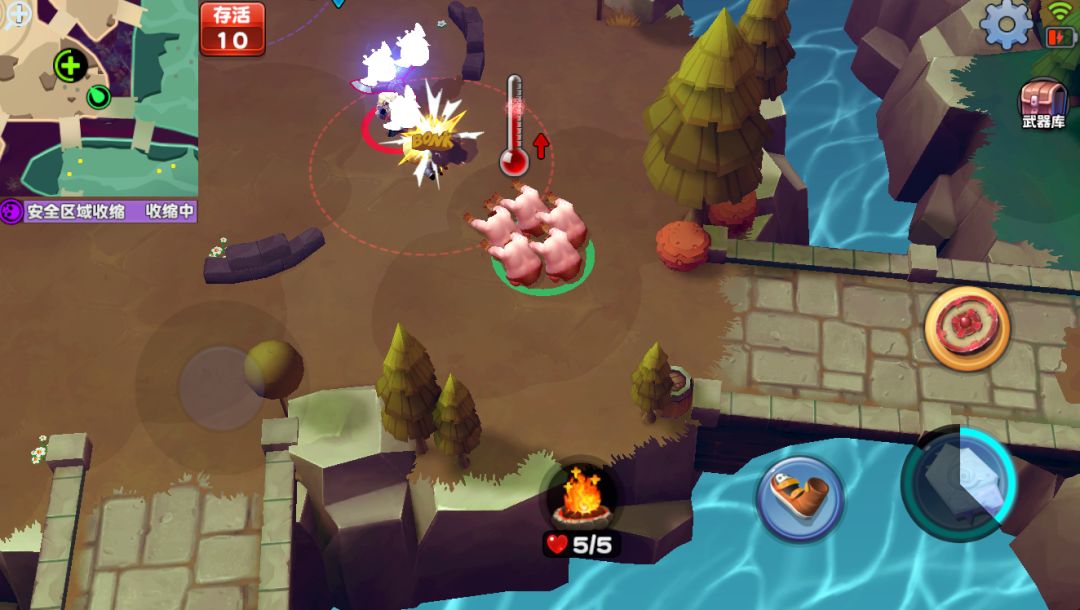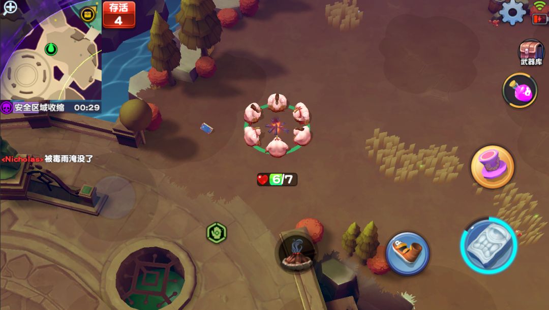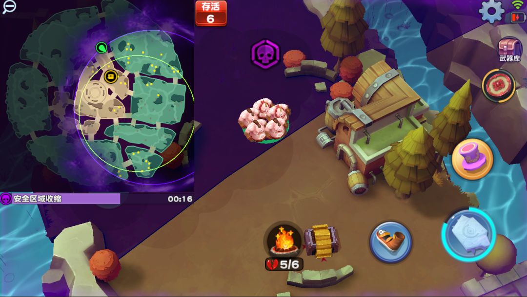虽然看起来毒圈和生存的设定很像大逃杀,但其实这都是在版本迭代中形成的;如果非要让我给这款游戏一个定位,我认为她应该在IO和吃鸡品类之间。我更希望她就是一种偏休闲的竞技体验,在后续的版本中,我们会为战场加入一些随机事件,到时候的观感恐怕会更不一样……