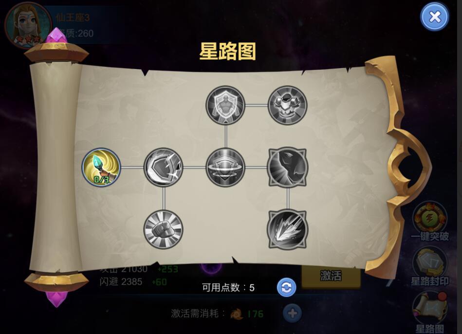 而避免领主大人们极限培养一位英雄的极端情况出现,英雄资质到达一定程度后会出现星路封印,只有阵容中的英雄全部满足资质条件后,才能继续进行英雄的星路沟通,获取更多星光点数。
