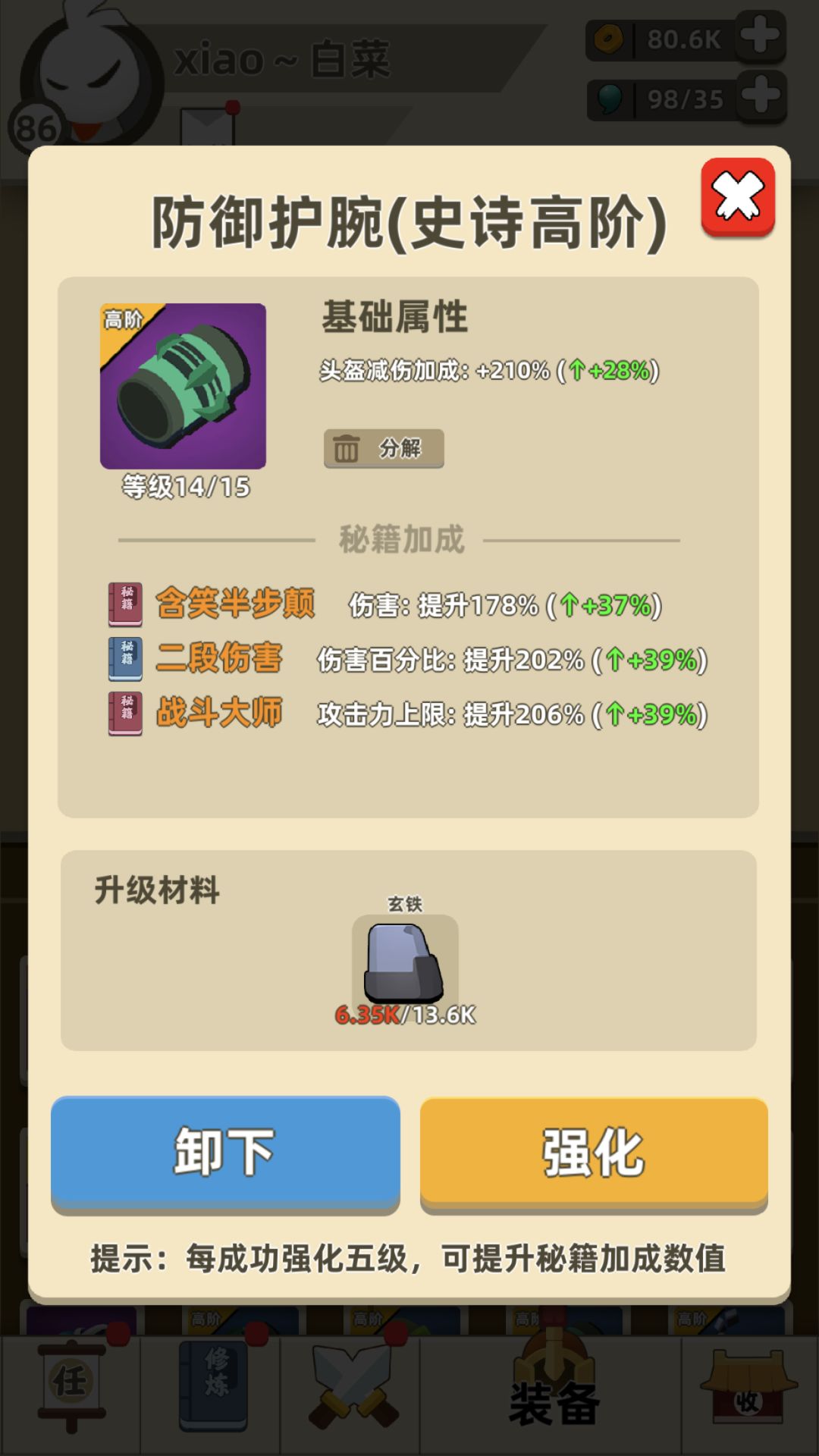 这两个首饰强化一共用600左右玄铁,我脸黑到现在都没用满级,刷了好久才弄到两个属性效果特别好的,大家升级饰品的时候,一定要看好饰品的效果在升级,比如第一张图虽然加攻击力,但效果太鸡肋了,建议大家这样的饰品不要去升级,不然打到后面很难玩的。
