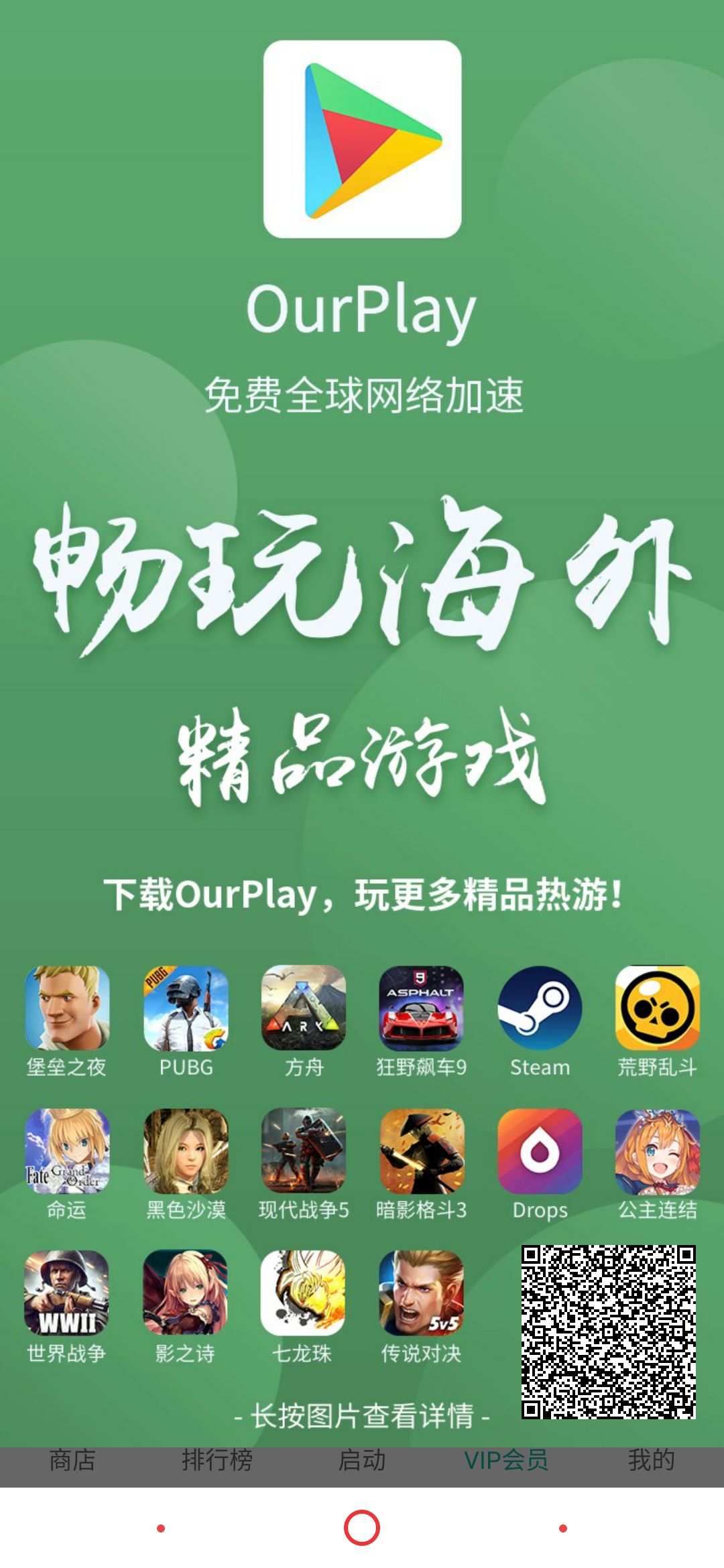 扫一下这个图片,然后下载这个软件,将游戏导入该软件中,就可以正常玩耍了。如果网络差的话,只是偶尔会退出来。百分百有效,可以玩的。里面还可以买谷歌账号。建议一定要用谷歌账号。