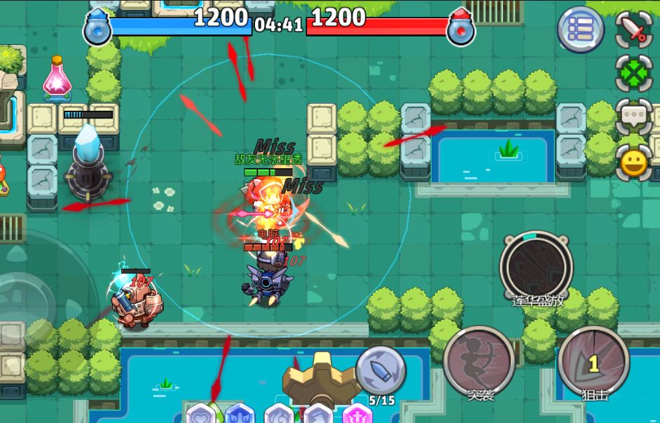 3.2技能原本会在射出的过程中被墙体裆下,但如果从某些自上而下的角度发射,则可越过墙体射出,利用这个特性可以很好的一边利用墙体保护自己,一边进行输出。(例如2技能配图中的情况)