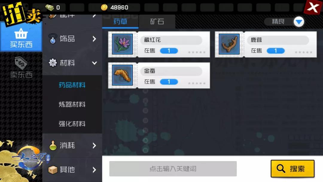 一直打不出想要的材料?没关系,去拍卖行搜一搜~啥都有!嘿嘿,这份藏红花我就收下啦~