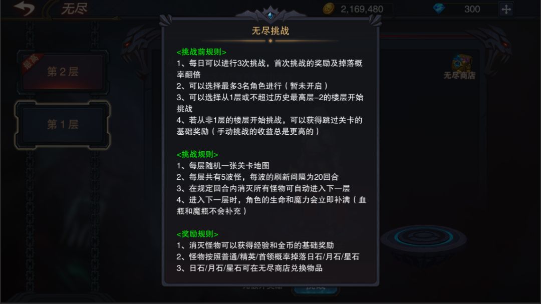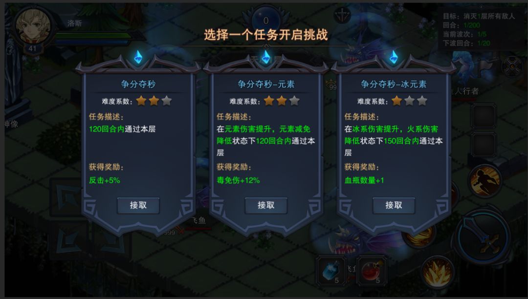 进入战斗后,每一层会有一个任务,完成任务可获得相应的奖励。