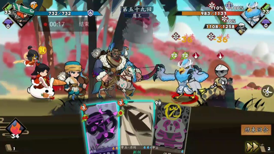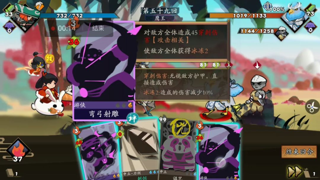 【乱舞】对目标敌人右方的1名敌人造成等额伤害。