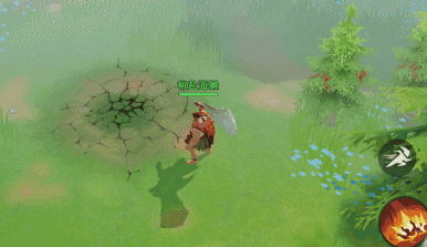 【技能效果】跳到指定位置,落地时周围敌人造成物理伤害和土系伤害。在落地位置创生一片地裂区域,持续附加减速效果。