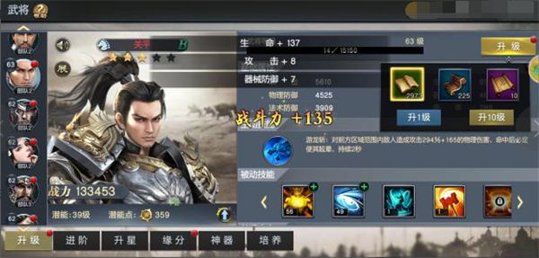 通过通关或者消耗经验书道具,可以获得武将经验,提升武将的等级。武将每次升级都会提高属性和战力。但是武将等级不能超过主公等级。