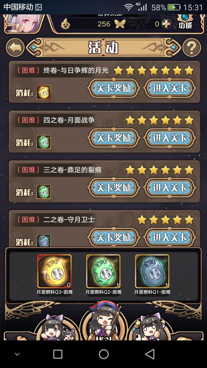 技巧:困难一感觉没什么好说的,感觉摸索一下都能过,困难二三的难度感觉就是嫦娥的伤血移动,所以要靠主神和月读技能快速给黑龙叠攻击力,装备一张高伤弹幕卡等除迷雾的卡,之后黑龙一套带走,不要回头!困难四的重点就是千万别打对面,全力叠攻击,除迷雾之后瞬间带走,在此之前全力考卡组保主神;