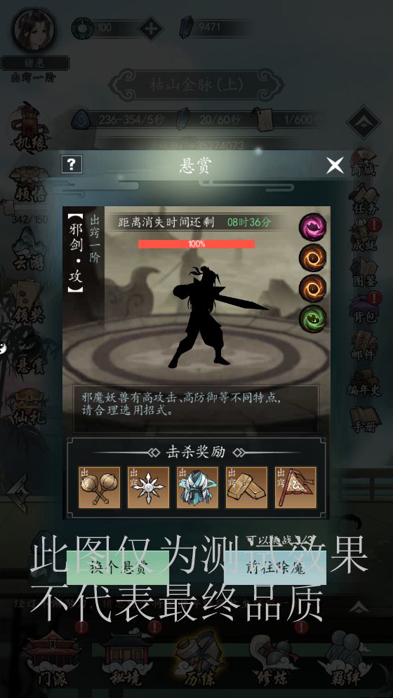 2.悬赏:悬赏除魔玩法,通过击败悬赏令上的魔物即可获取高品质法器等珍稀奖励