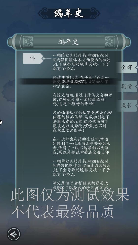 1. 编年史:在编年史中可以查看自己的修炼历程,从初入山门到成长为修仙大能的成长过程,点点滴滴,俱在其中