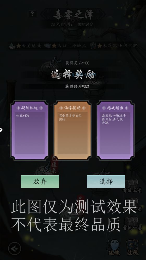 1. 云游:roguelike副本,需要依靠决策选择各种有趣的战斗效果,协助通关,云游途中可以挖掘别人埋藏的功法,或者埋下自创功法福荫后人!