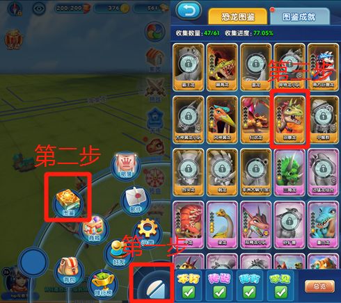 (1)打开《我的恐龙》,点开右下角【菜单】,选取【图鉴】,随机选取一条恐龙