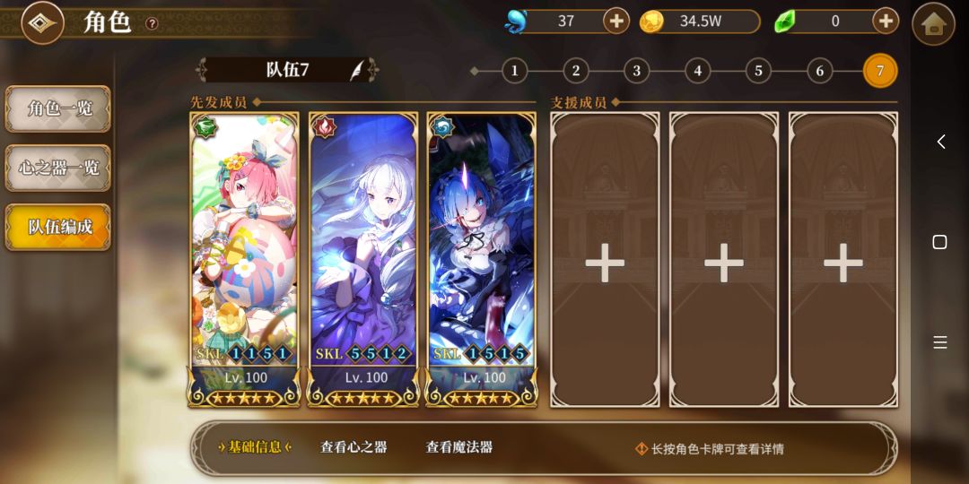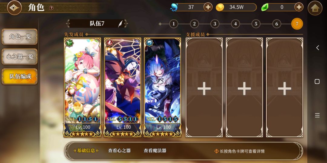 这三组队伍,是我针对彩拉不同方面的能力而配的。侦探队主要是针对一些属性变化,骡子队主要是针对彩拉的保护能力,睡衣队主要是针对彩拉大招的效果。