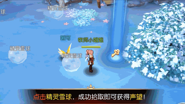 玩家可以通过点击刷新的雪球,来开启并拾取掉落的【钥匙】及【声望点数】