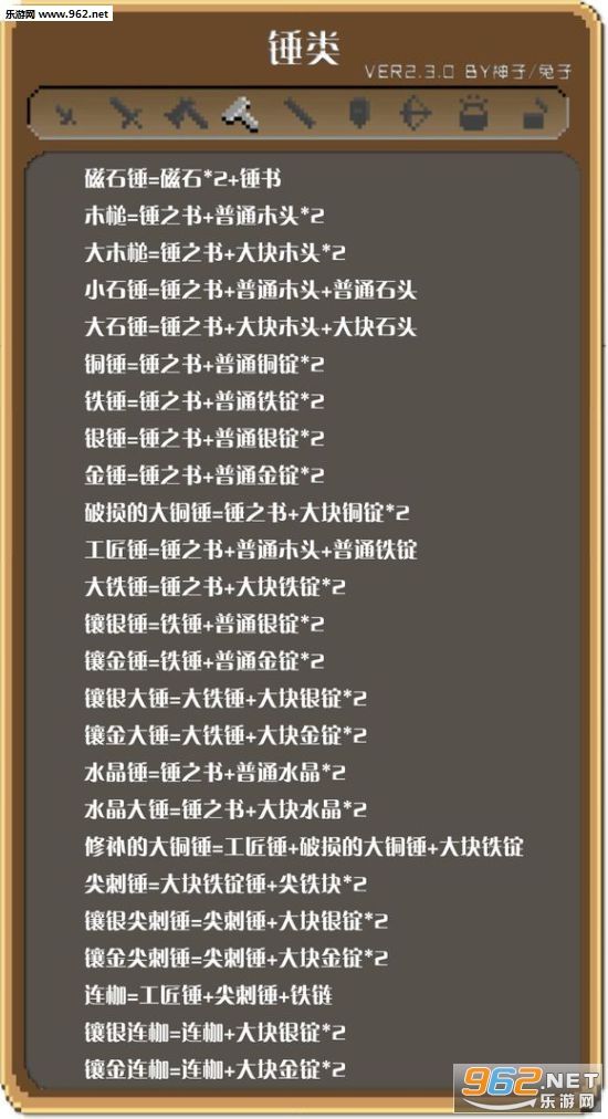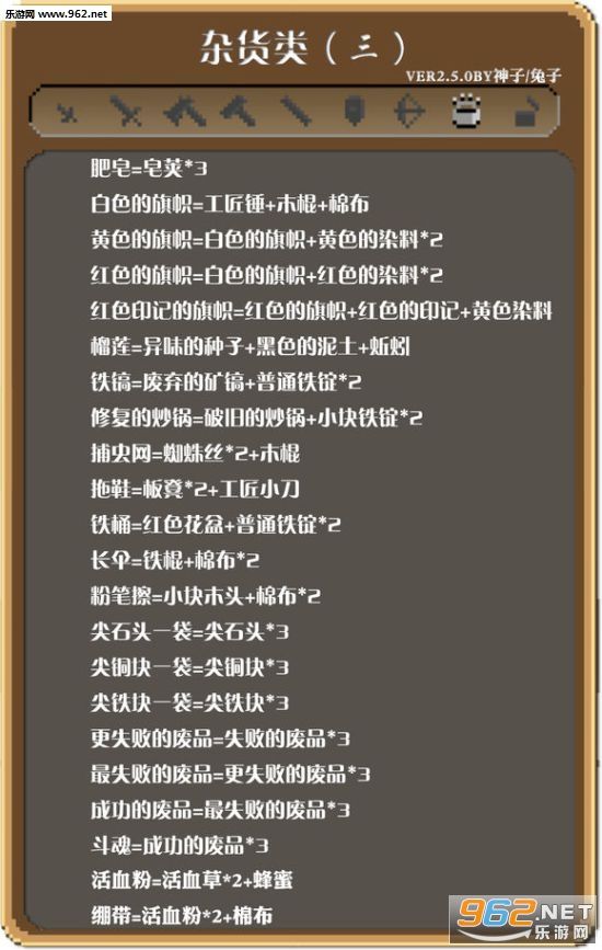 全物品合成表(来源网络)