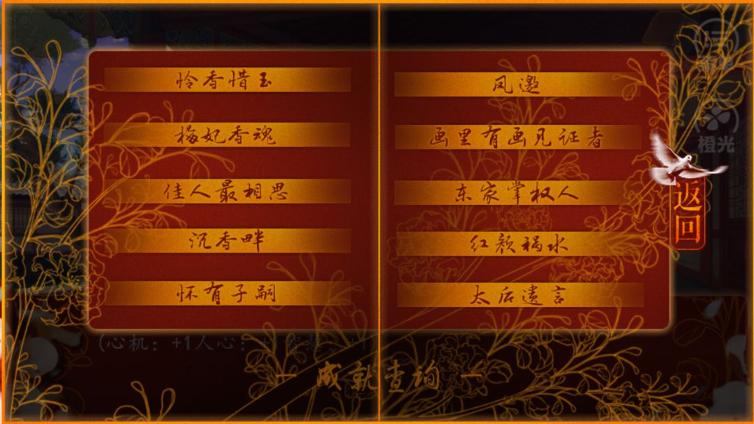 四个主要宫女:红香,锦绣,灸和,风铃。注:这里选择锦绣,大后期锦绣会叛变,可重新选择其他宫女