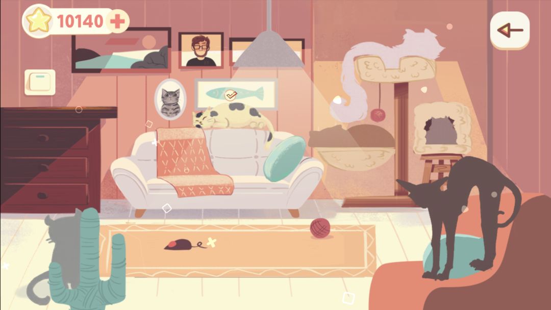 除了保护猫猫的玩法外,游戏中还设立了猫舍,猫舍中有各式各样的猫,随着游戏分数的增高,能解锁不同的猫咪,拥有不同的游戏皮肤背景~