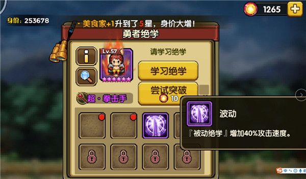 当勇者等级达到57级后可开启勇者绝学功能,消耗特定的材料既有一定几率开启勇者绝学栏,每位勇者最多可学习8个绝学,消耗材料提高学习进度,当进度达到100%即可学习。