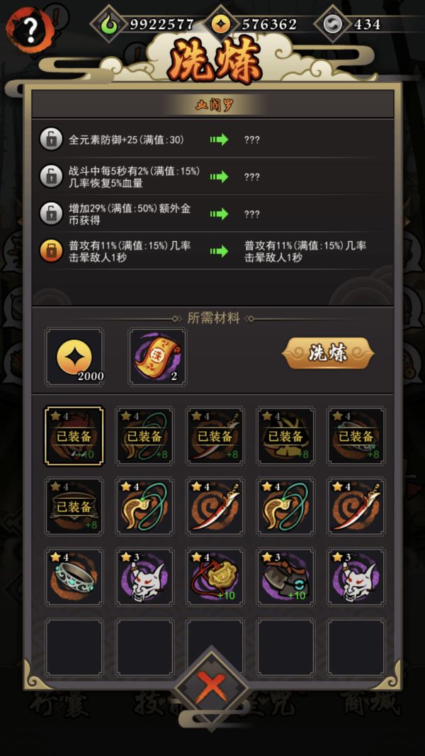 消耗金币可以进行装备洗炼,装备洗炼会改变装备随机词缀。