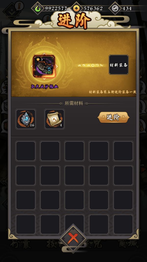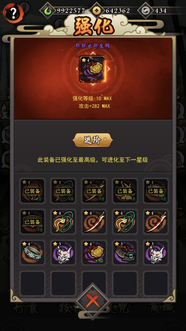 装备进阶:强化+10的装备可以进阶。