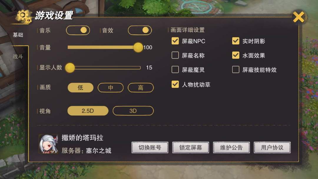 2. 取消掉画面详细设置中,【屏蔽NPC】选项;