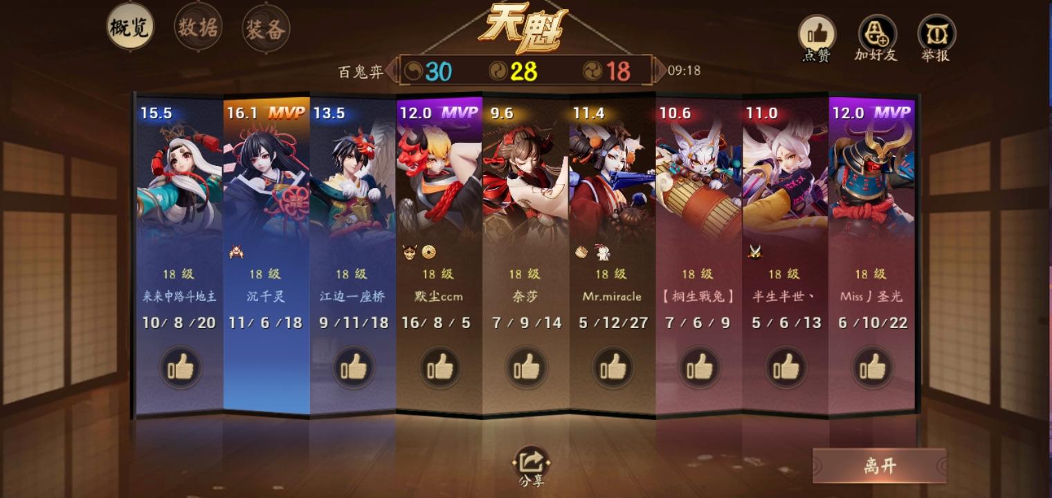 然后昨天晚上掉段后打百鬼,玩了几场总算遇到彼岸花了,然后是全场最佳,但有点尴尬的是为什么是抗伤最高呢。。。我出的明明是法装。。。