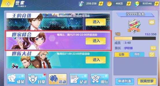 加入世家之后点活动,“世家峰会”的入口就藏在这儿~