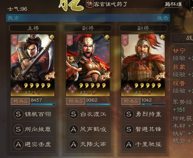 输出全看甘宁是否爆发,吕蒙输出比较平稳。