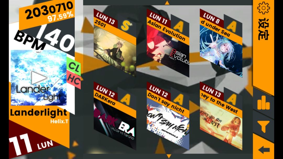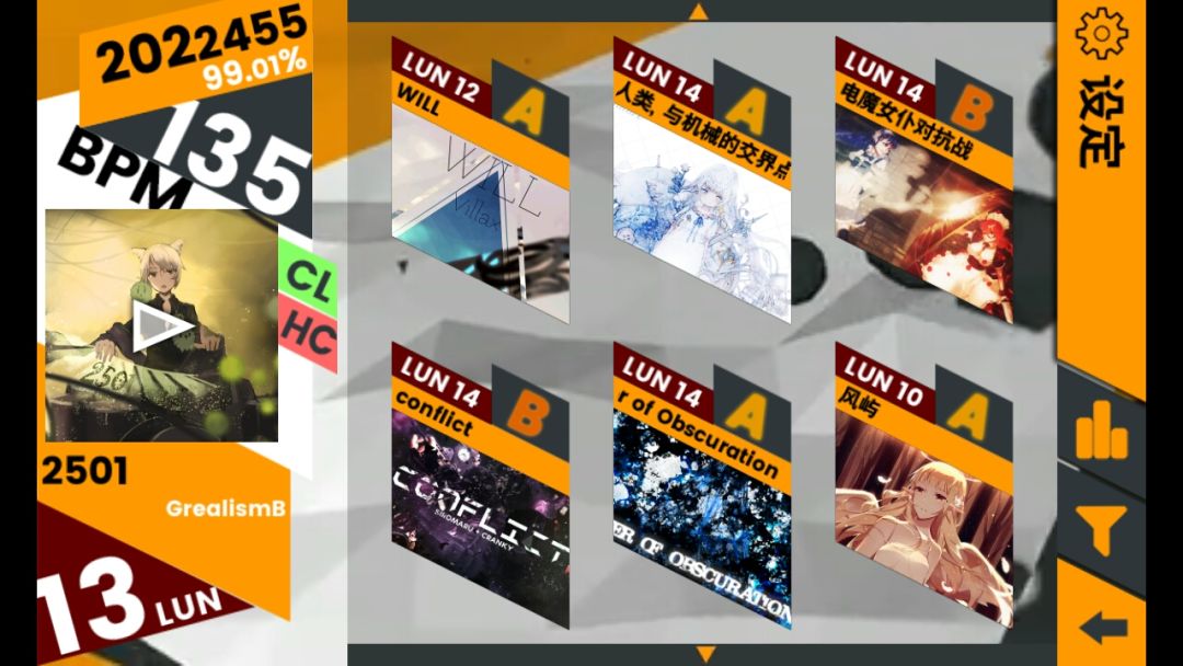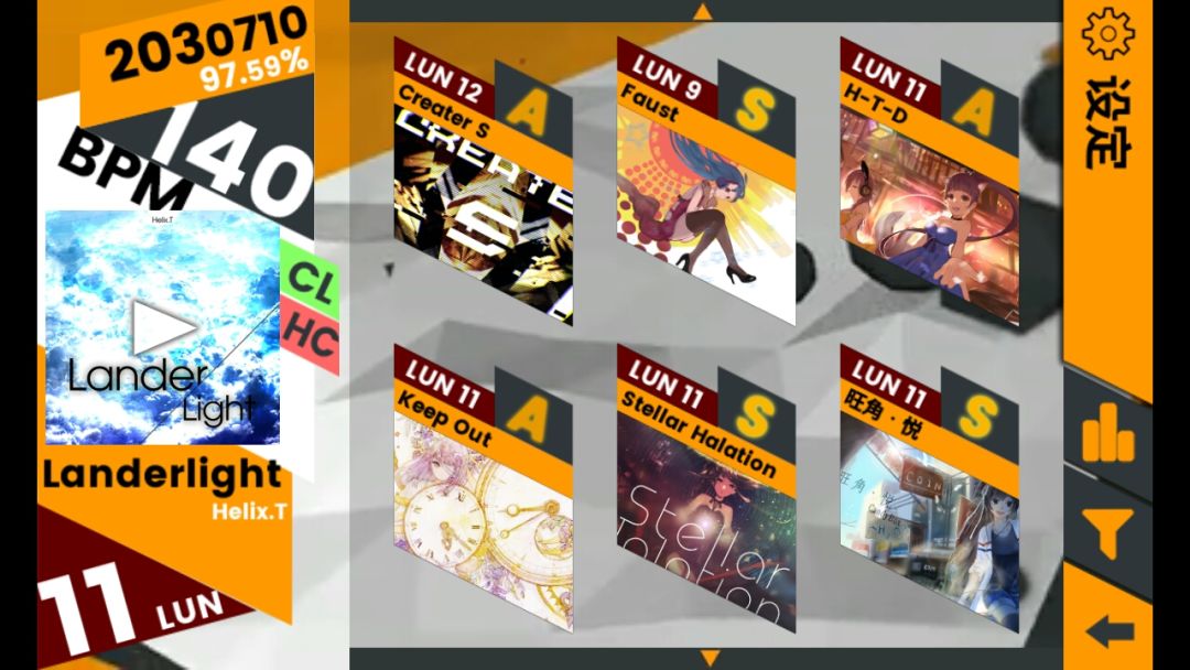 好不容易解锁完全部包括挑战歌曲再把每首的LUN难度打完了