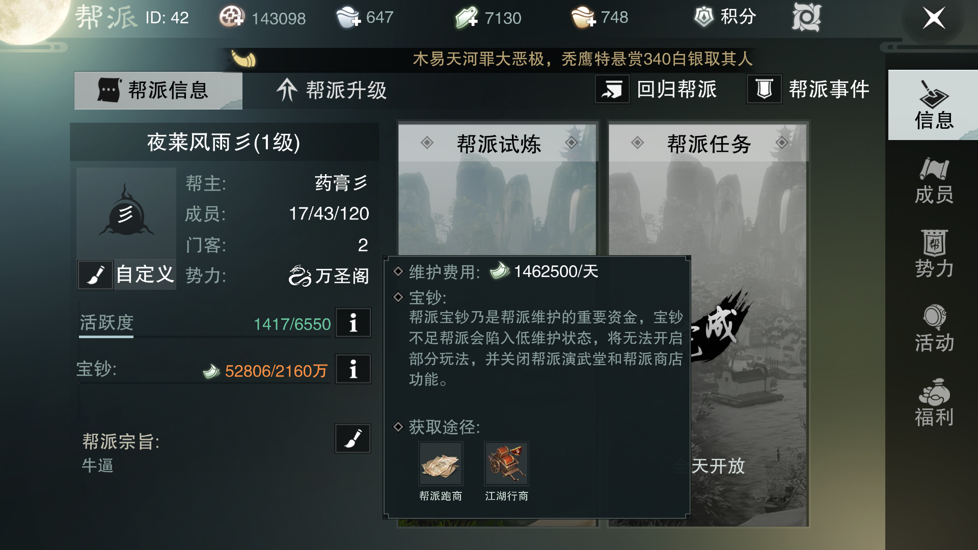 一(新手向)楚留香手游 帮派宝钞是个难题