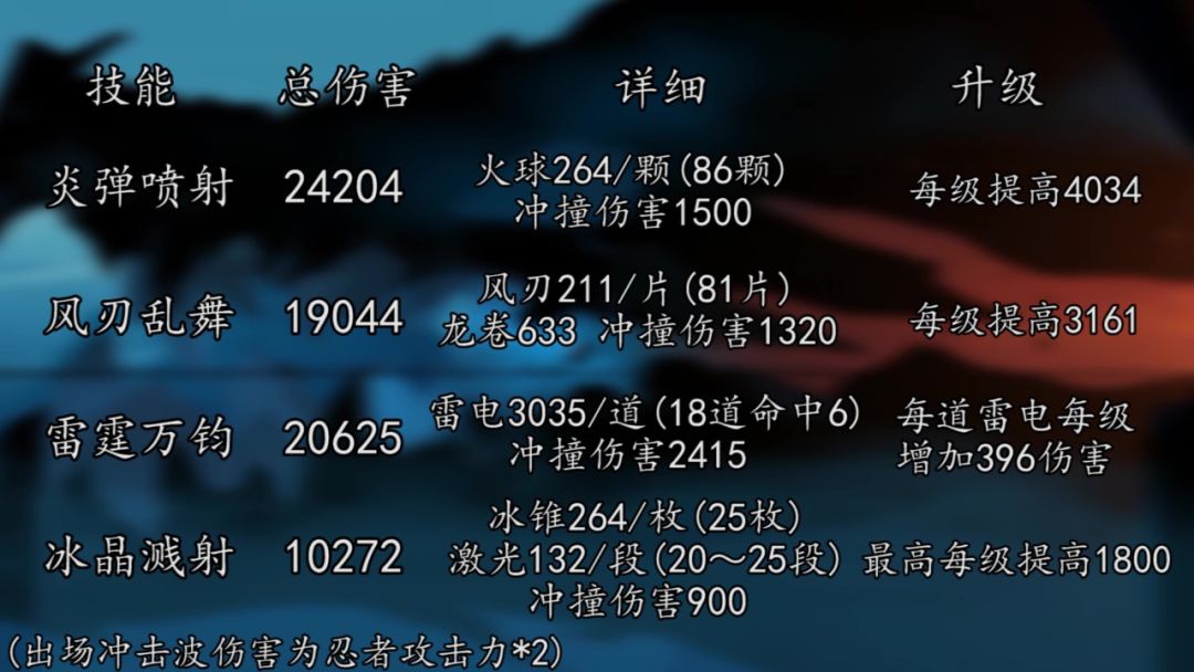 技能每级增加的伤害也都有测试过,除雷龙外其他3只通灵兽的伤害均是乘以(50/300),也是就是说这3只通灵兽的伤害是每级增加(1/6)。(小数后会四舍五入)